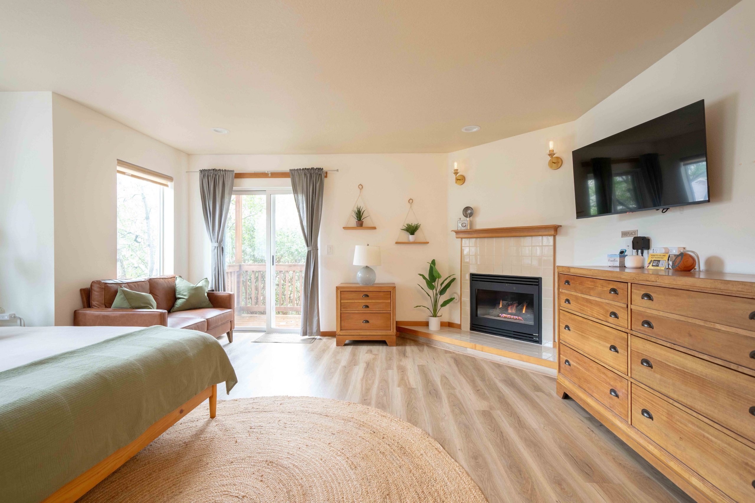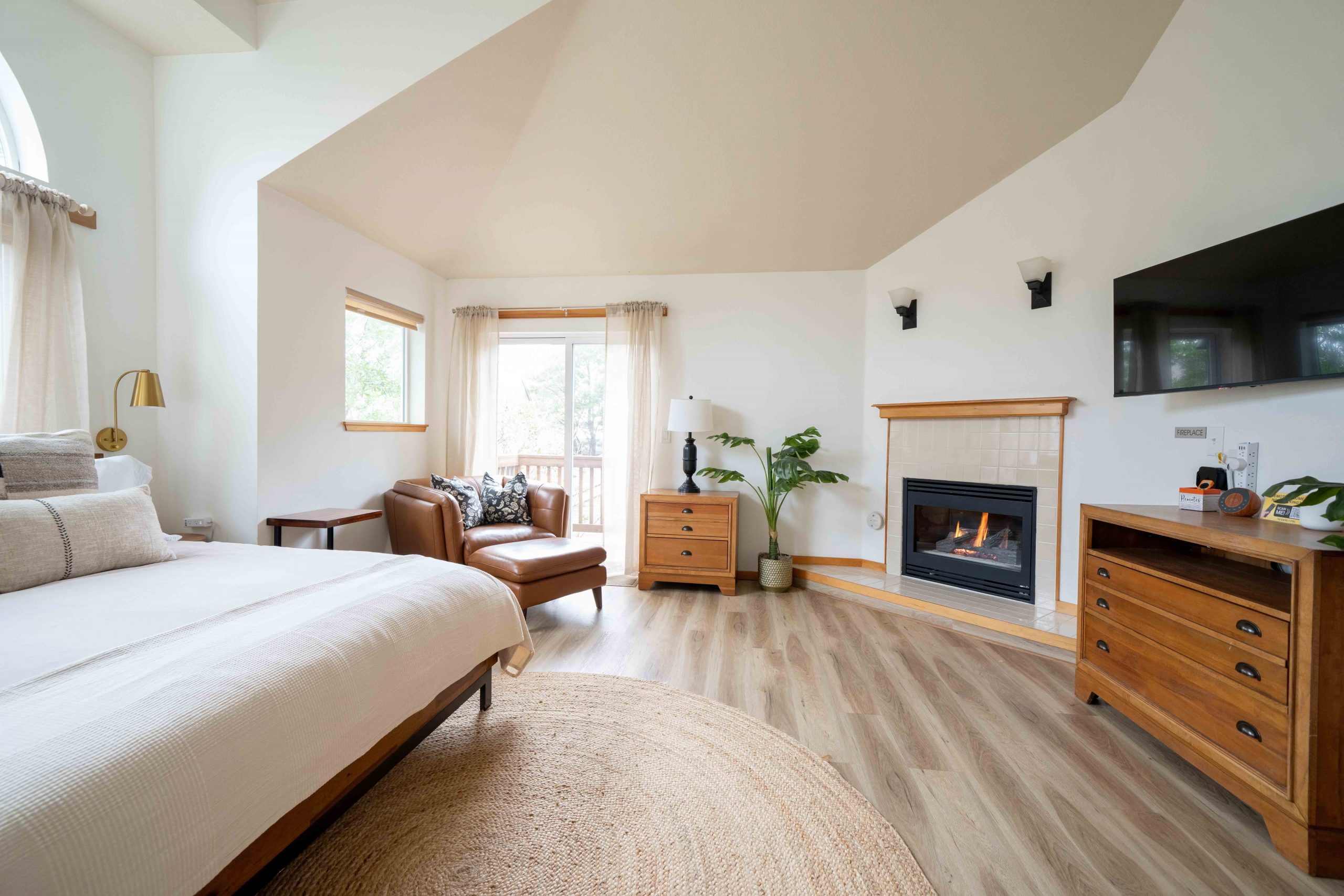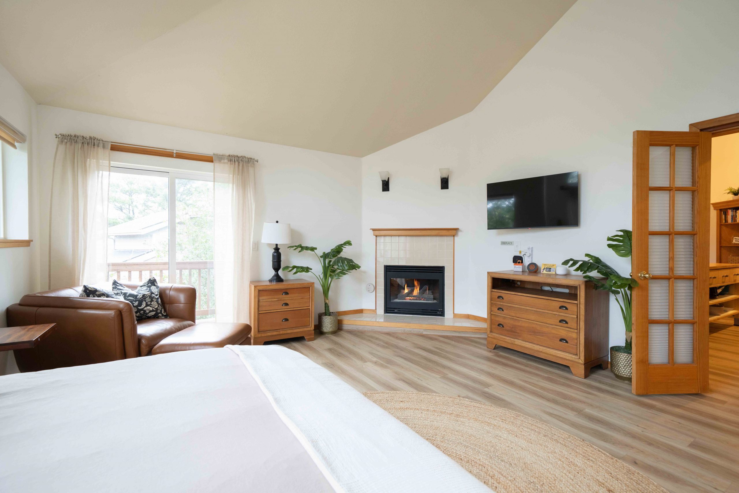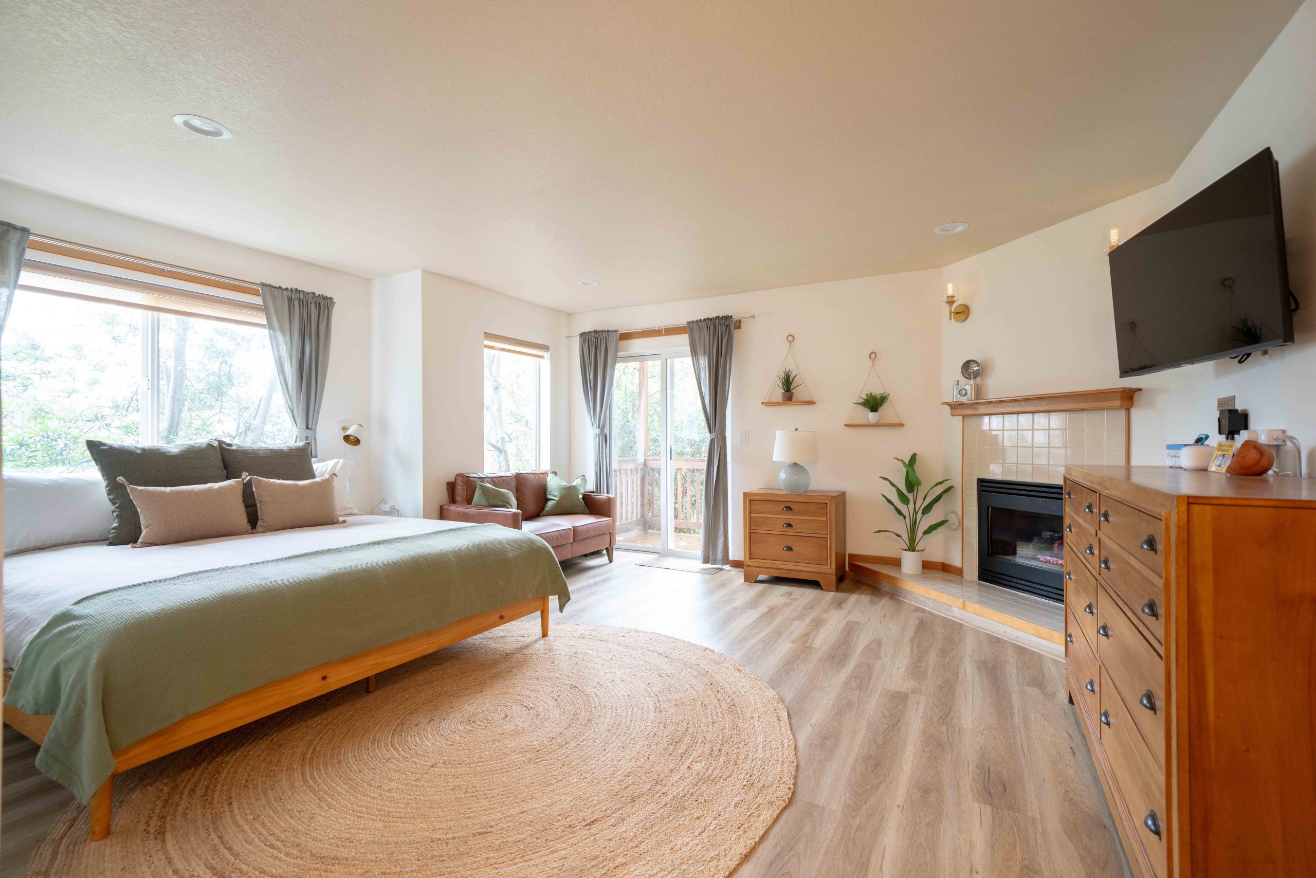 Parents will especially appreciate the upstairs primary suite—a serene escape featuring a king-size bed, private balcony, en-suite bathroom with tub and shower, gas fireplace, Apple TV, private entrance/exit and a cozy lounge for enjoying morning coffee while the rest of the house sleeps. All luxury bath products provided are 100% vegan, paraben-, sulfate-, phosphate-, and cruelty-free.