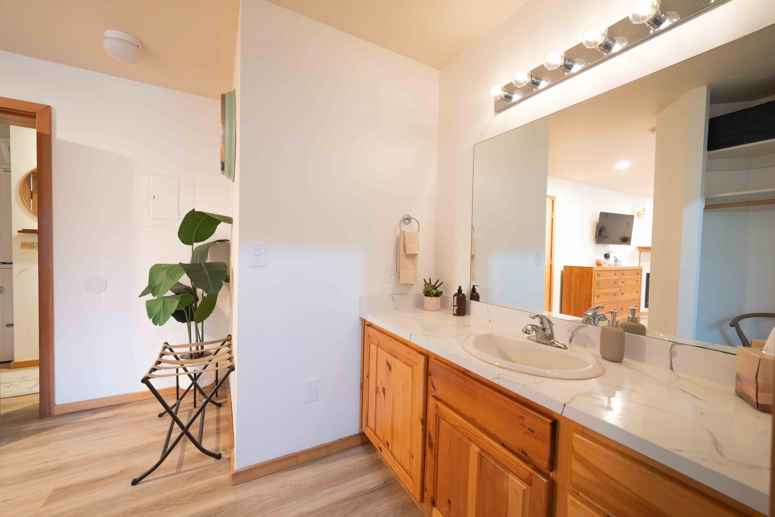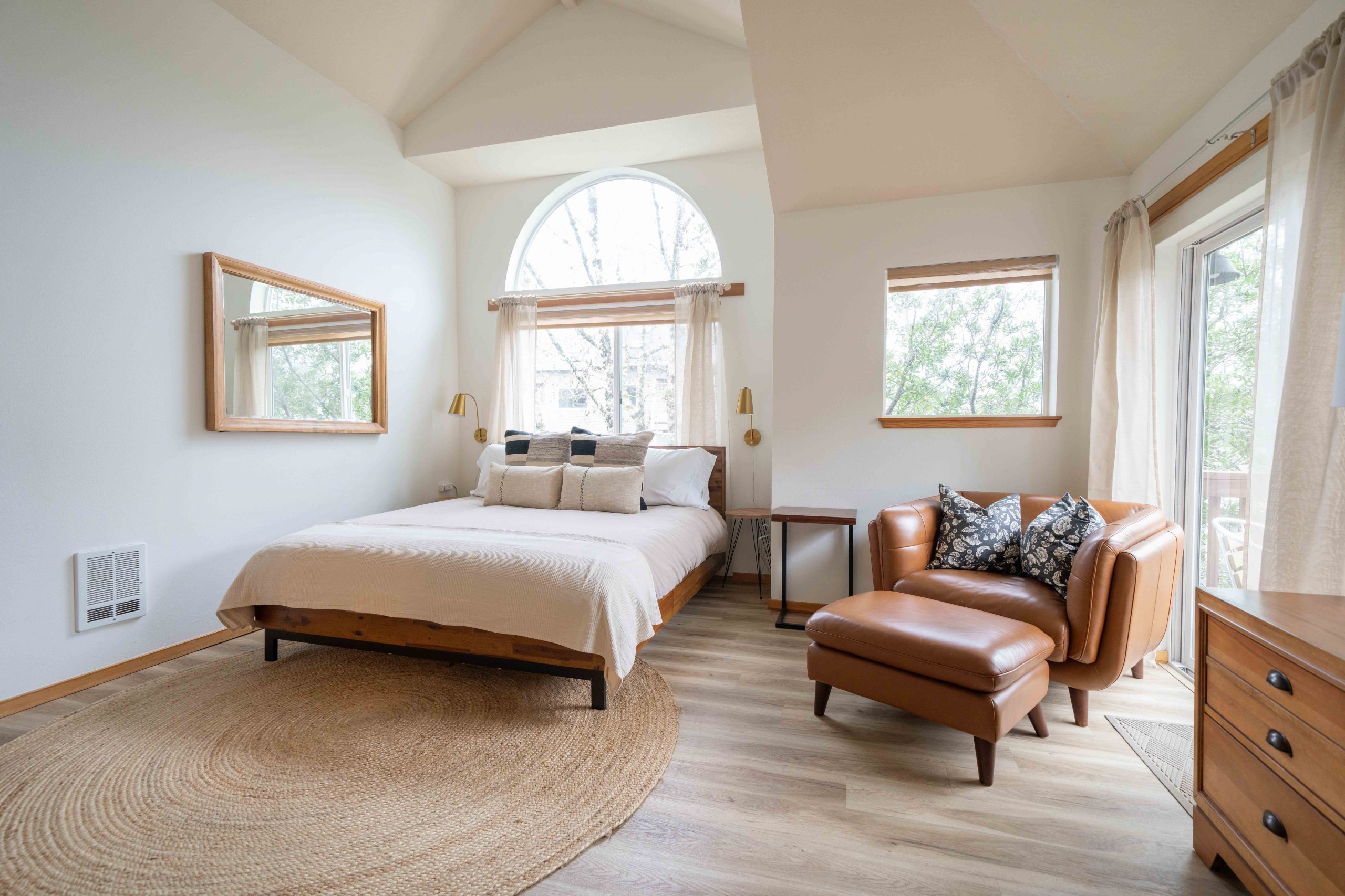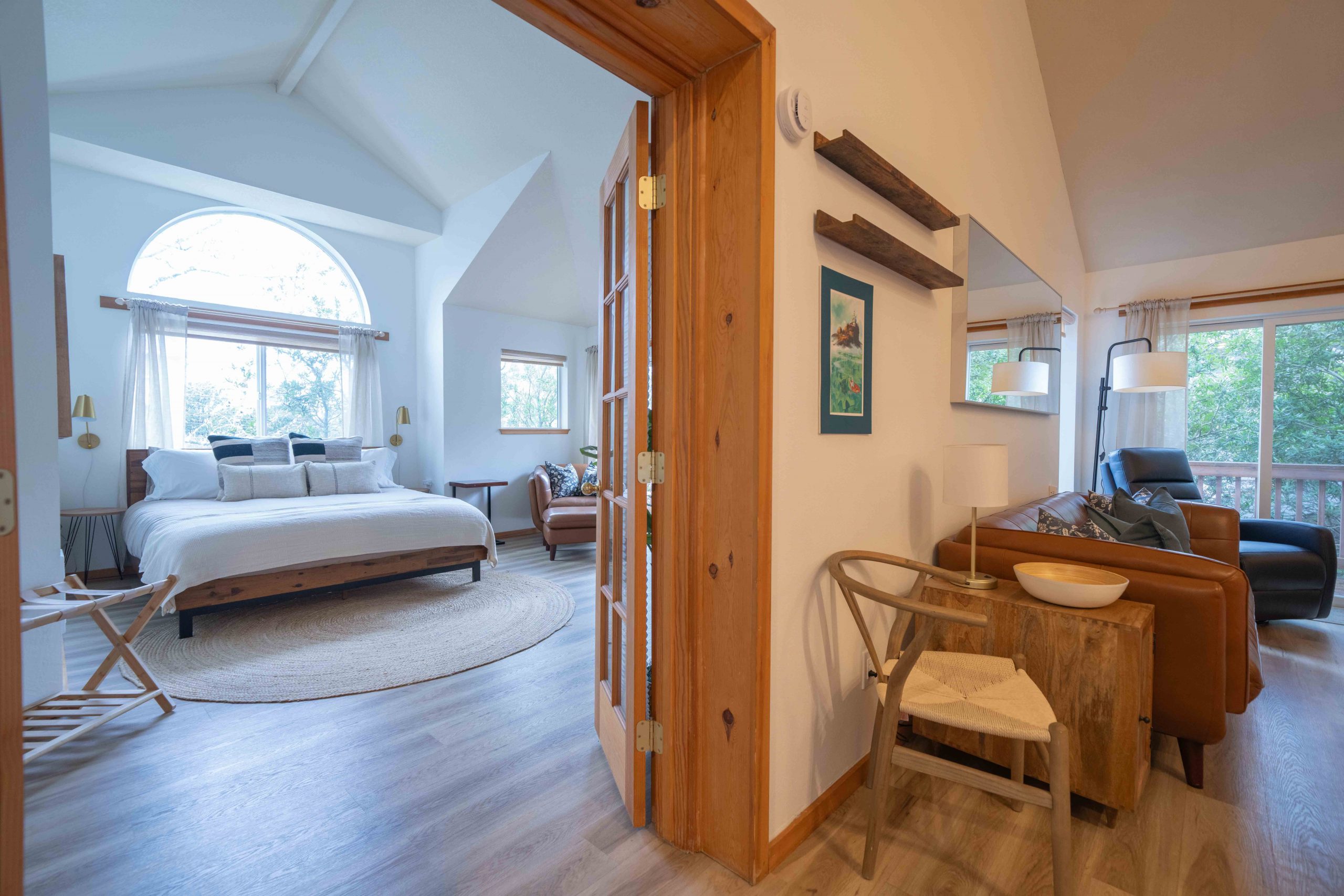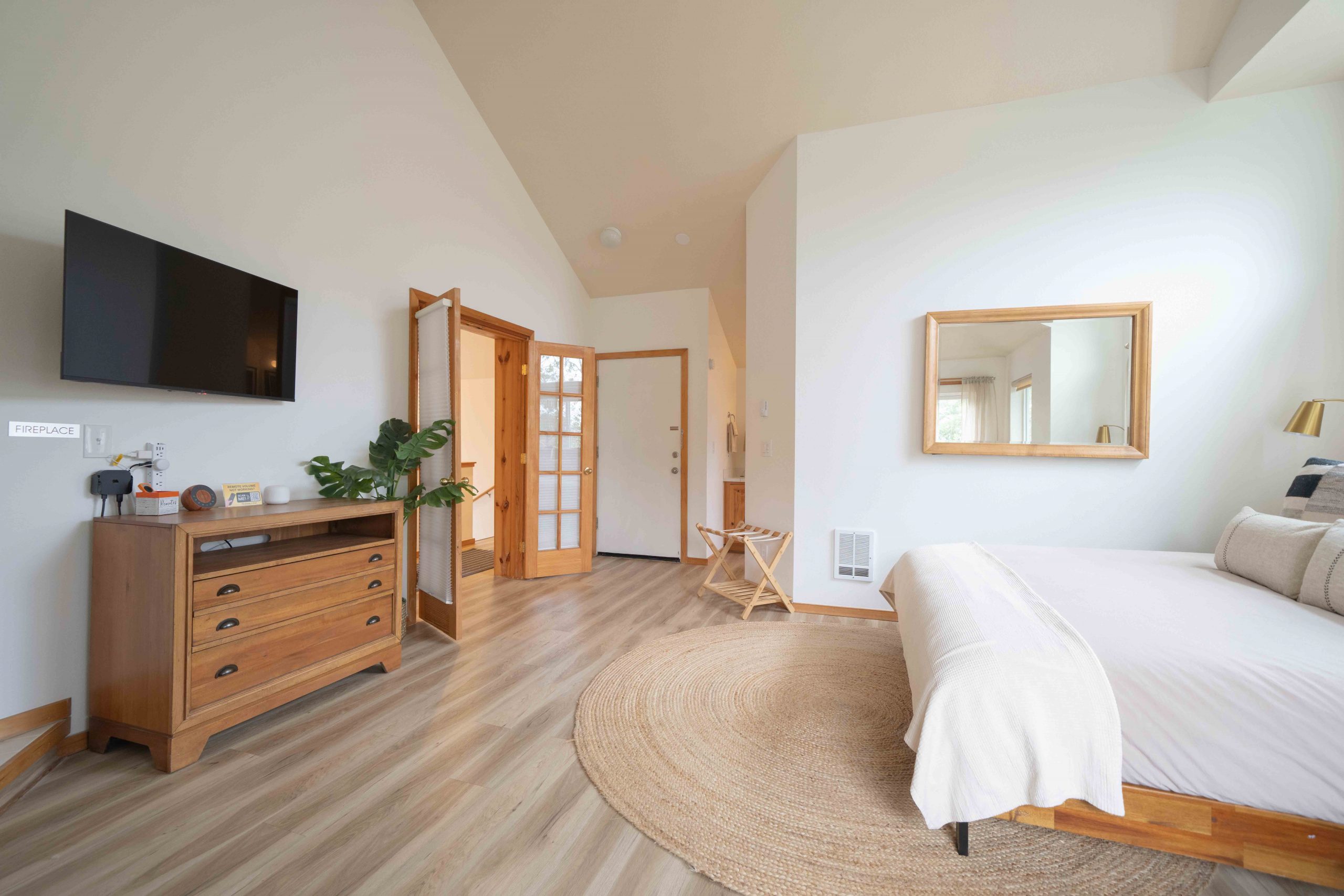 Parents will especially appreciate the upstairs primary suite—a serene escape featuring a king-size bed, private balcony, en-suite bathroom with tub and shower, gas fireplace, Apple TV, private entrance/exit and a cozy lounge for enjoying morning coffee while the rest of the house sleeps. All luxury bath products provided are 100% vegan, paraben-, sulfate-, phosphate-, and cruelty-free.